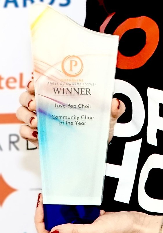 Love Pop Choir are delighted to announce that they have been awarded the Yorkshire Prestige Award for Community Choir of the Year 2023/24.